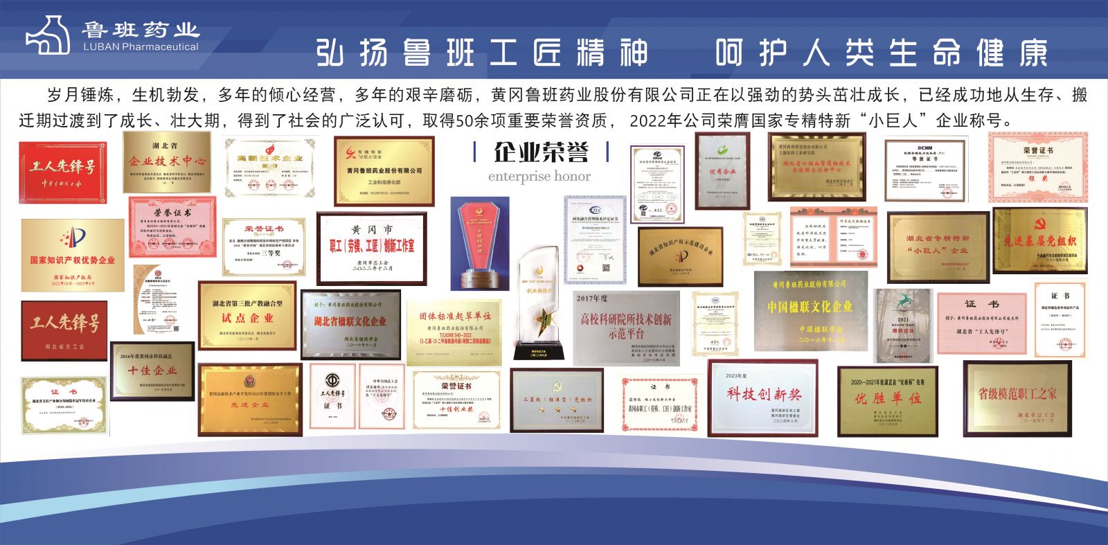 黄冈鲁班药业股份有限公司近年来荣誉资质情况表